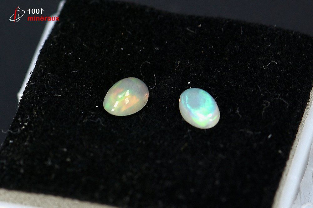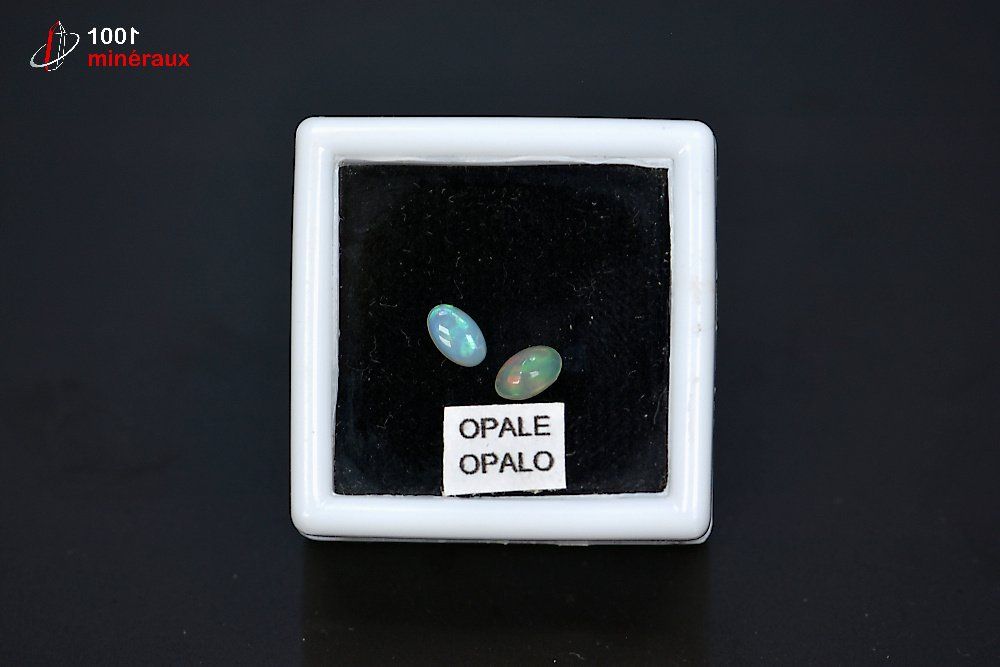2 très belles Opales polies présentées dans un boîtier transparent.