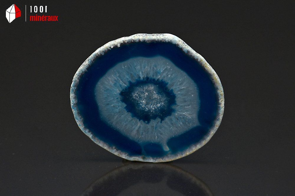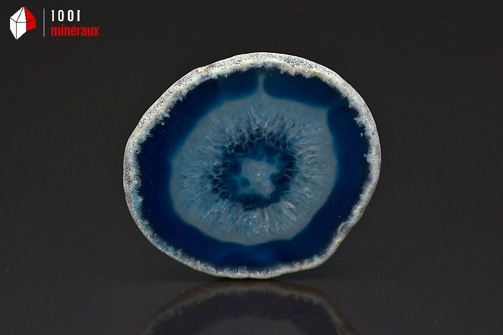 La PIERRE d'AGATE BLEUE est souvent vendue en tranches et colorée artificiellement, mais on la trouve aussi bleue naturellement.