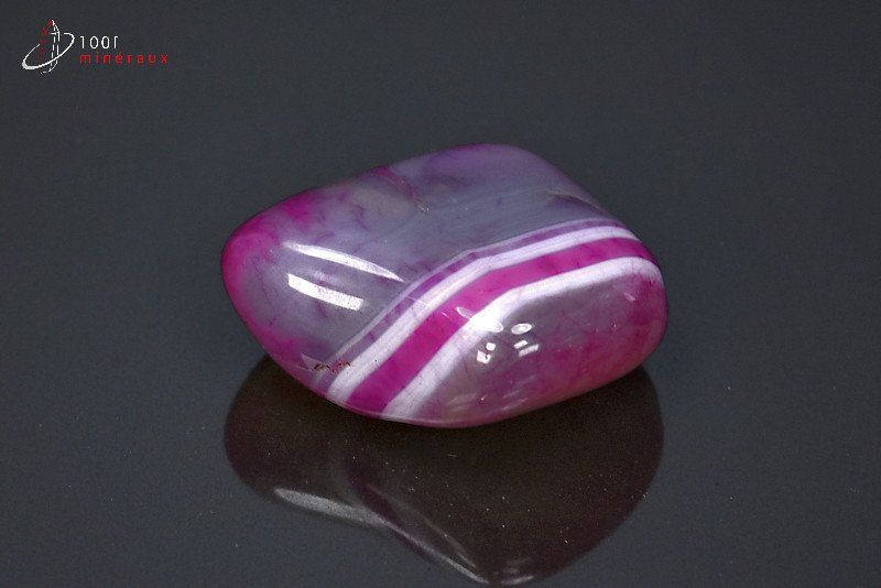 La PIERRE d'AGATE LILAS appartient au groupe des silicates. Elle contient du silicium et a la même formule chimique que le Quartz ou l'Améthyste. La pierre d'agate lilas est souvent vendue en tranches et quelquefois colorée artificiellement, mais on la trouve également sous forme massive. La couleur des agates varie au rythme de leurs bandes concentriques, de l'incolore au blanc, en passant par le bleu, le brun, le gris et le vert.