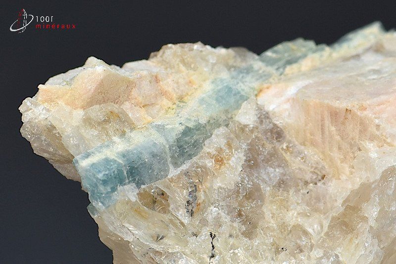 Spécimen d'un cristal brut de Béryl Aigue-marine sur Quartz de 4,7 cm.