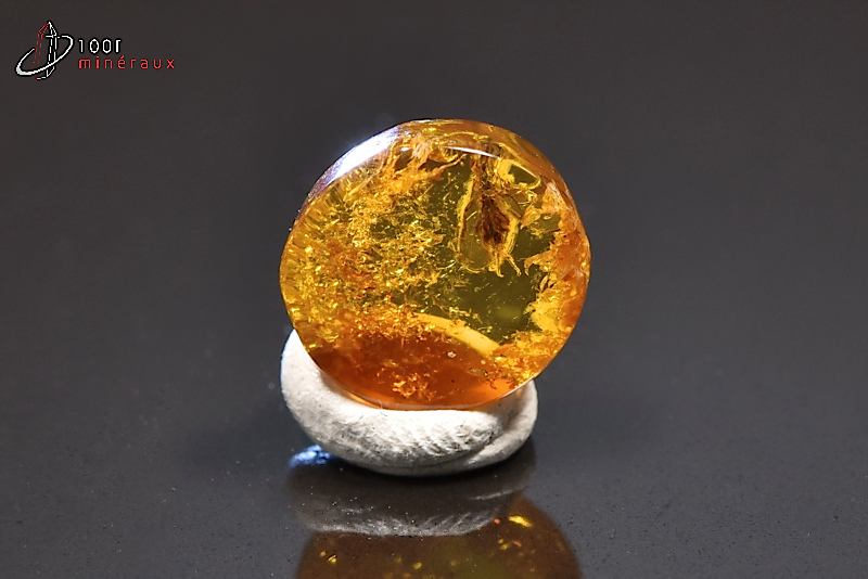 L' AMBRE FOSSILE est une résine fossilisée issue de conifères. Son âge dépasse la plupart du temps plusieurs millions d'années et il n'est pas rare d'y trouver inclus des petits insectes ou bien des débris végétaux, parfaitement conservés et donc du même âge. L'Ambre fossile de Pologne provient de la mer Baltique et s'est formée entre -30 et -50 Ma. Sa couleur varie du jaune pâle au jaune-brun.
