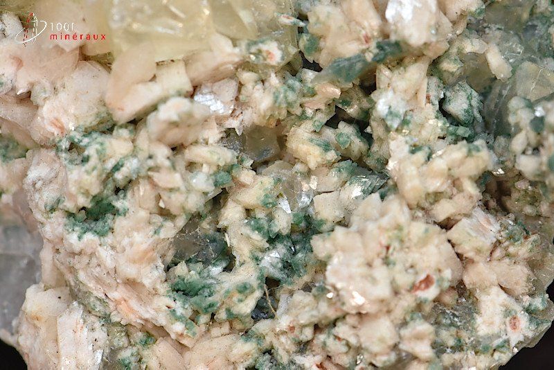 L' APOPHYLLITE appartient au groupe des silicates. Elle contient du potassium, du calcium et du silicium. Elle se présente généralement en cristaux et on la trouve souvent associée à la Stilbite ou à l'Heulandite. L' APOPHYLLITE est incolore, verdâtre ou rose.