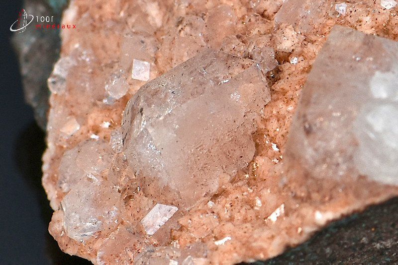 Très beaux cristaux translucides d'Apophyllite, sur Heulandite rosée.