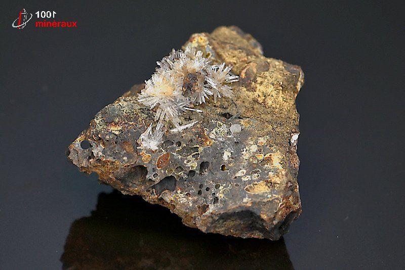 L' ARAGONITE appartient au groupe des carbonates et contient du calcium et du carbone. L' ARAGONITE peut avoir des cristaux rayonnants, prismatiques, dendritiques ou aciculaires.Quant à sa couleur, elle est le plus souvent brune, mais on la trouve aussi incolore, verte ou blanche.Son nom provient de la ville d'Aragon en Espagne. Dans la région du Centre (France / Puy de Dôme) on peut trouver des formations aciculaires de cristaux translucides d'Aragonite.