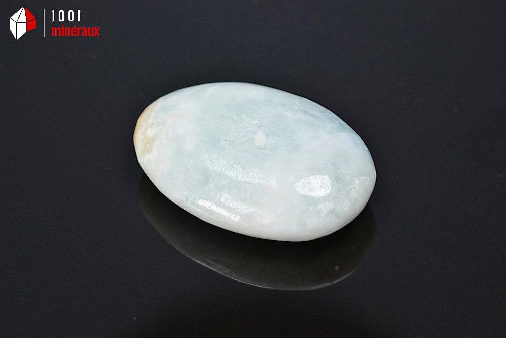 Galet Aragonite bleue polie. L'Aragonite bleue porte aussi le nom de Calcite des Caraïbes.
