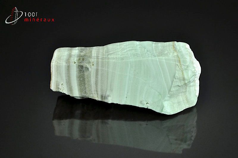 Très beau spécimen d'une plaque d'Aragonite verte polie mettant en valeur les dessins des couches sédimentaires.