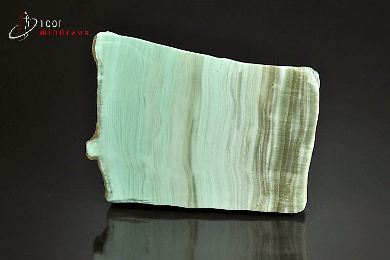 Très beau spécimen d'une plaque d'Aragonite verte polie mettant en valeur les dessins des couches sédimentaires.