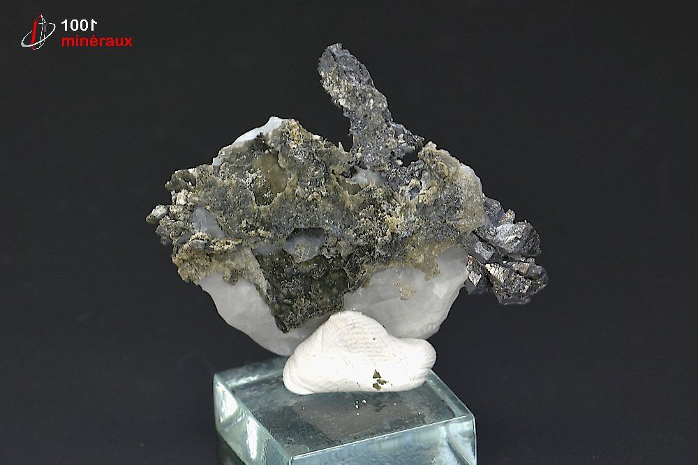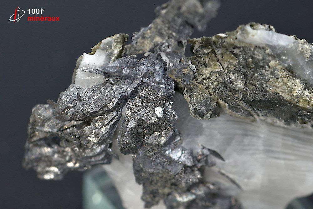 Spécimen d' Argent natif cristallisé gris métallique sur Quartz.