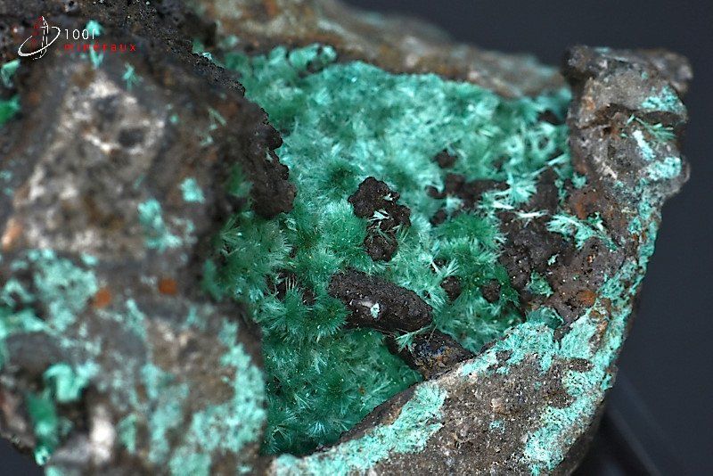 La couleur de l'Aurichalcite oscille entre le bleu clair et le vert.