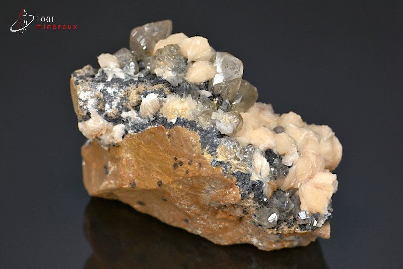 Baryte, Cérusite et Galène - Maroc - minéraux à cristaux 6,6 cm / 172g / BE763