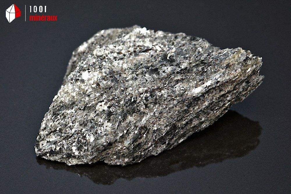 La BIOTITE ou MICA NOIR appartient au groupe des silicates, sous-groupe des phyllosilicates de la famille des Micas. Elle contient du potassium, du magnésium, du fer, de l'aluminium, du silicium et du fluor. Sa formule chimique est K(Mg,Fe)3(Al,Fe)Si3O10(OH,F)2.