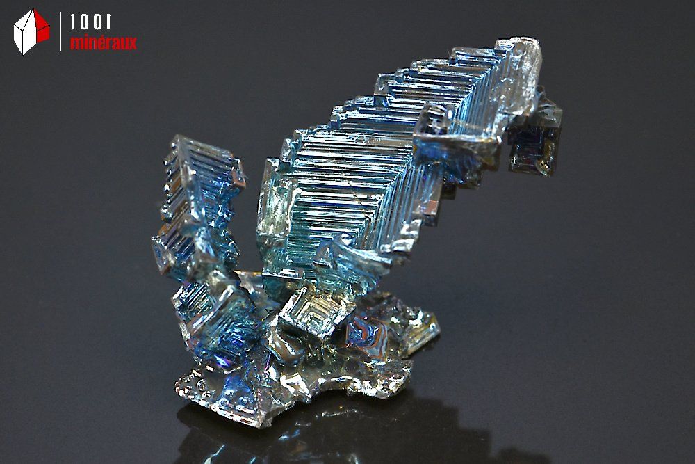 Le BISMUTH est surtout utilisé dans des alliages avec d'autres métaux. Les magnifiques cristaux sont des spécimens artificiels mais le BISMUTH cristallisé à l'état naturel existe aussi et porte la dénomination de cristallisation "squelette".
