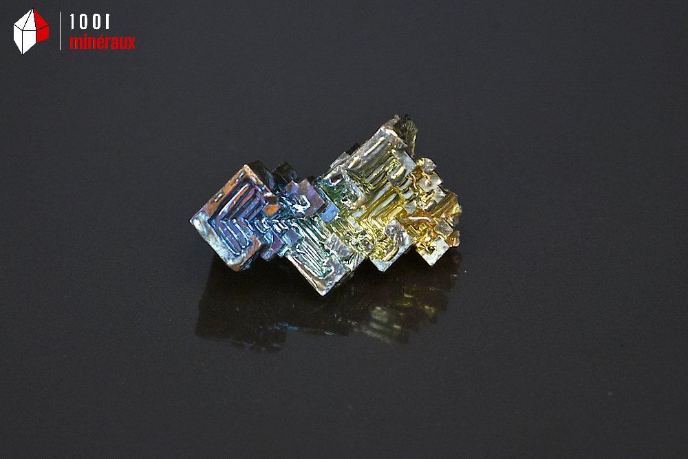 Le BISMUTH est surtout utilisé dans des alliages avec d'autres métaux. Les magnifiques cristaux sont des spécimens artificiels mais le BISMUTH cristallisé à l'état naturel existe aussi et porte la dénomination de cristallisation "squelette".