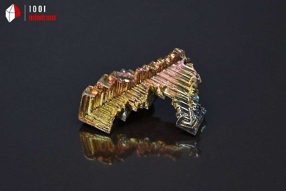 Le BISMUTH est surtout utilisé dans des alliages avec d'autres métaux. Les magnifiques cristaux sont des spécimens artificiels mais le BISMUTH cristallisé à l'état naturel existe aussi et porte la dénomination de cristallisation "squelette".