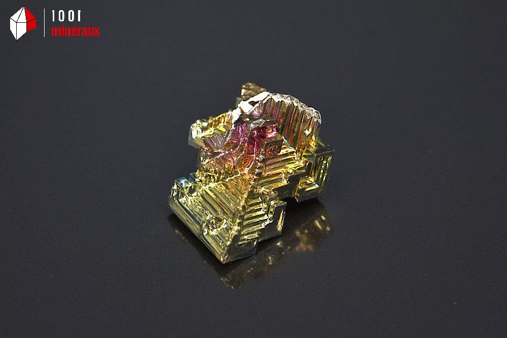 Joli spécimen d'une cristallisation artificielle de Bismuth jaune et rose.