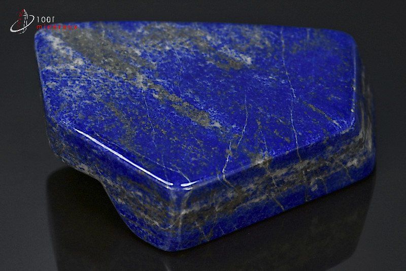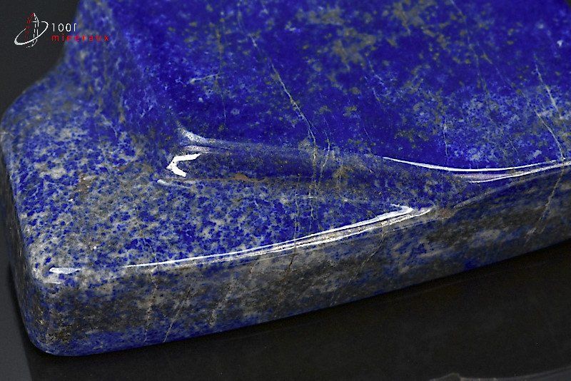 Très beau spécimen d'un bloc de Lapis lazuli poli en forme libre avec des reflets dorés de Pyrite.