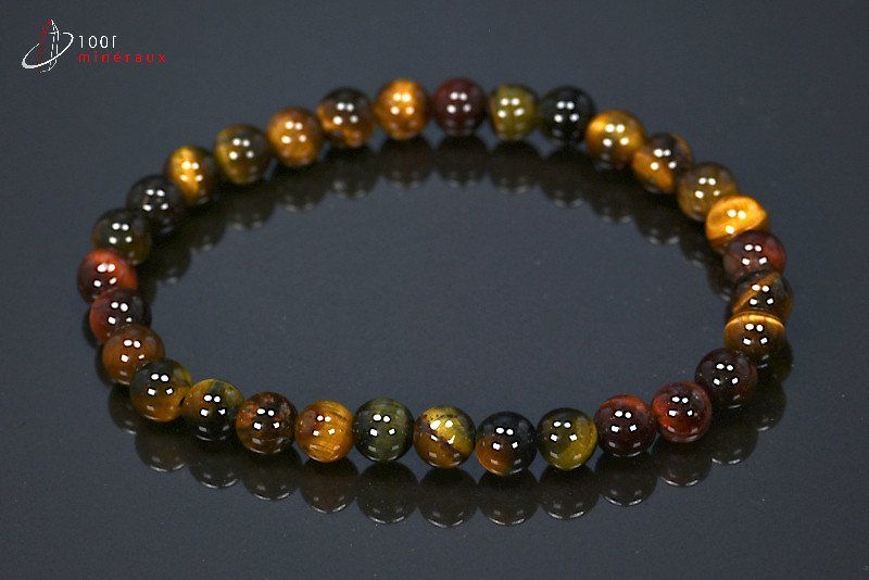 Bracelet très élégant composé de perles de 3 yeux (oeil de tigre, de taureau et de faucon) de 6mm de diamètre.