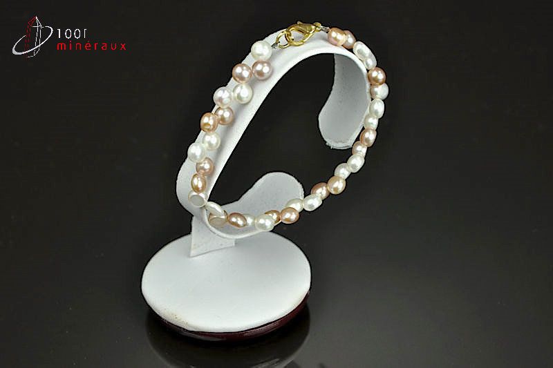 Bracelet enfant très élégant composé de perles Biwa plates de 5mm dans les tons de blanc et rose montées en alterné.