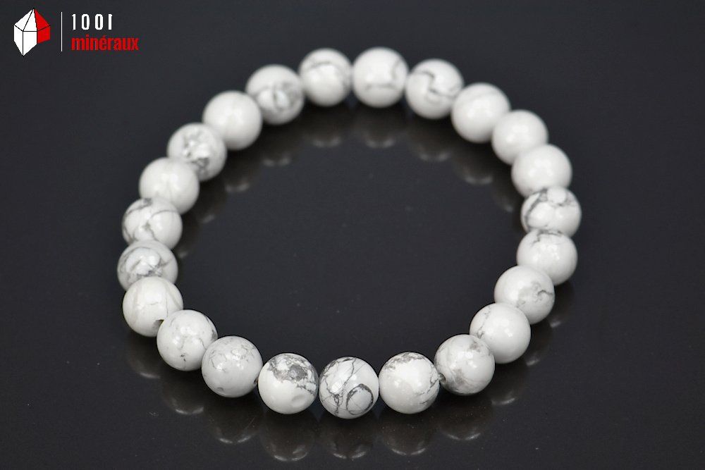 Bracelet très élégant composé de perles en Howlite de 8 mm de diamètre.