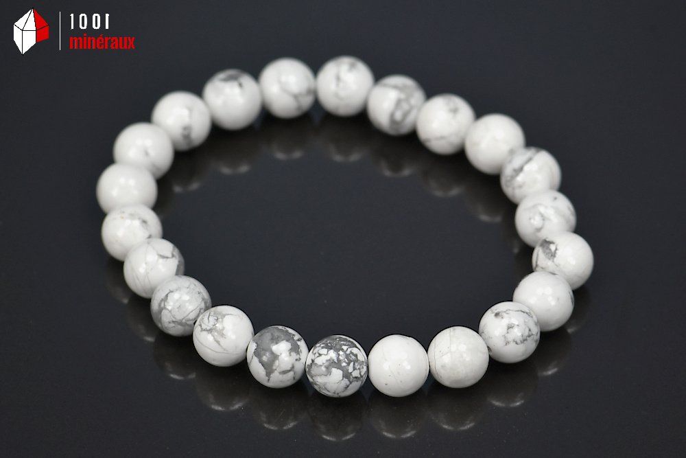 Bracelet très élégant composé de perles en Howlite de 8 mm de diamètre.