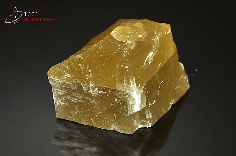 Spécimen d'une Calcite miel montrant les stries et les lignes de clivage spécifiques.