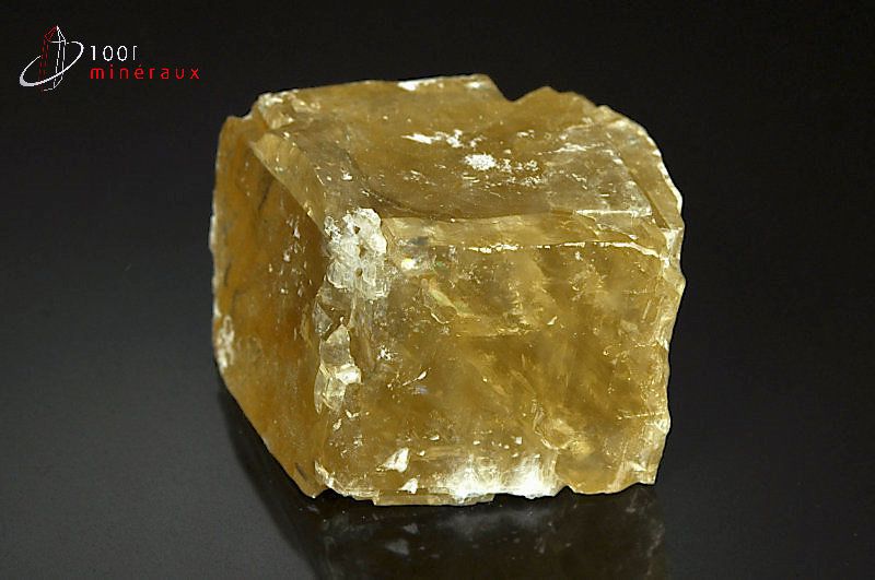 Spécimen d'une Calcite miel montrant les stries et les lignes de clivage spécifiques.