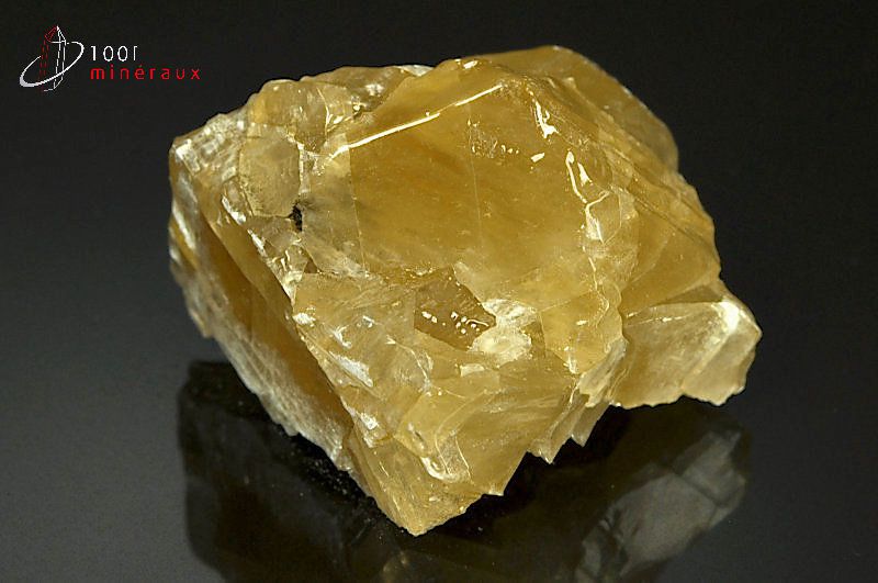 Spécimen d'une Calcite miel montrant les stries et les lignes de clivage spécifiques.