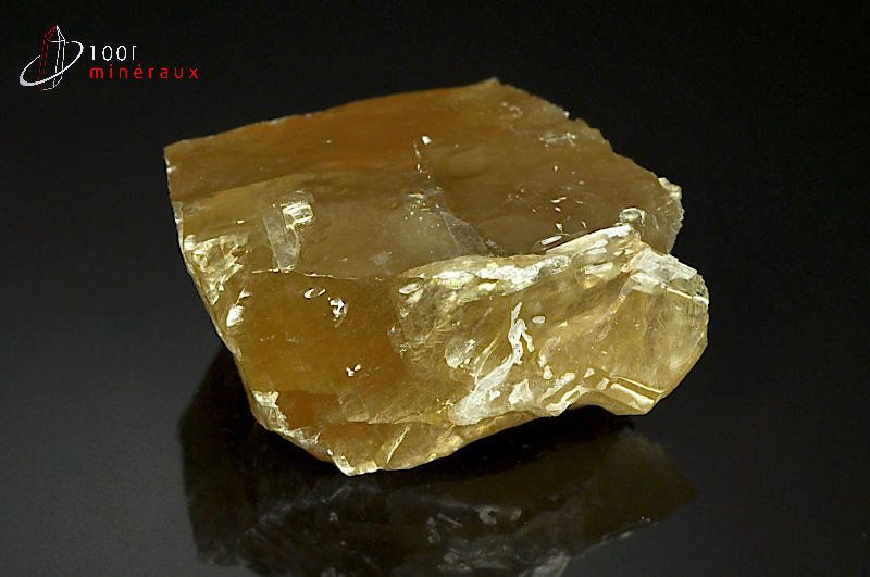Spécimen d'une Calcite miel montrant les stries et les lignes de clivage spécifiques.