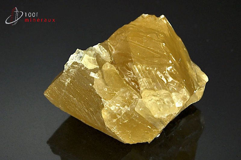 Spécimen d'une Calcite miel montrant les stries et les lignes de clivage spécifiques.