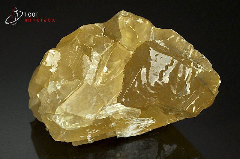 Spécimen d'une Calcite miel montrant les stries et les lignes de clivage spécifiques.