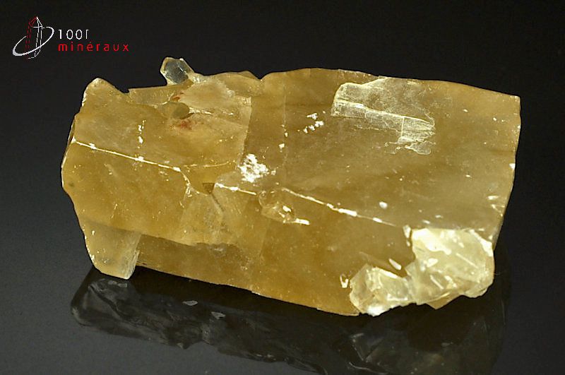 Spécimen d'une Calcite miel montrant les stries et les lignes de clivage spécifiques.