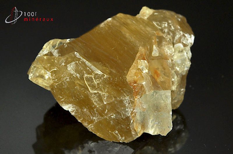 Spécimen d'une Calcite miel montrant les stries et les lignes de clivage spécifiques.
