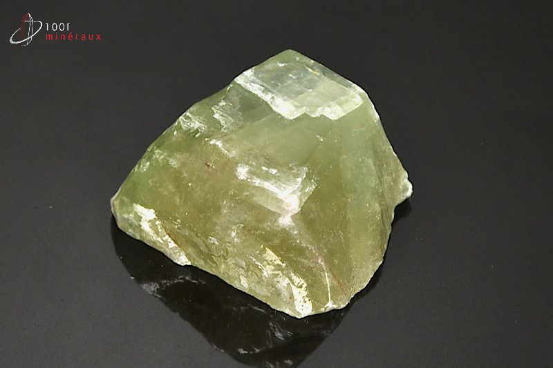Spécimen d'une Calcite verte brute montrant de nombreuses lignes de fracture.