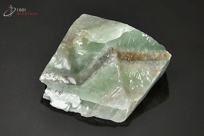 Spécimen d'une Calcite verte brute montrant de nombreuses lignes de fracture.