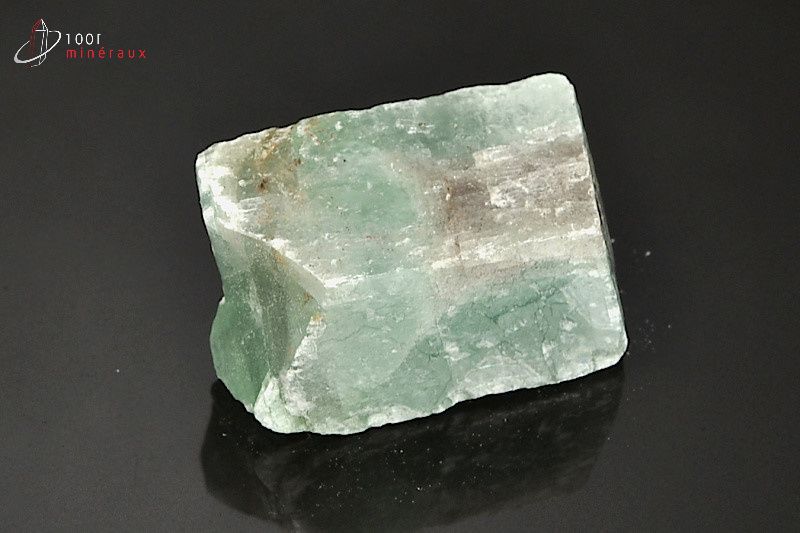 Spécimen d'une Calcite verte brute montrant de nombreuses lignes de fracture.