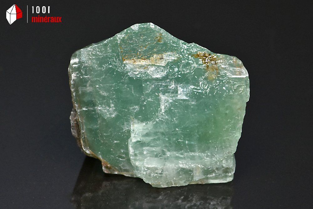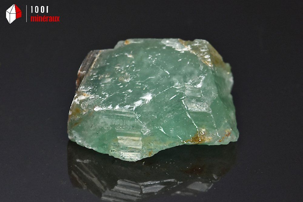 Spécimen d'une Calcite verte brute montrant de nombreuses lignes de fracture.