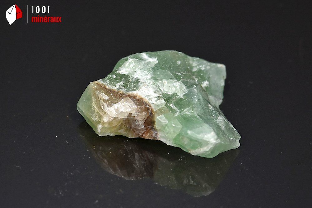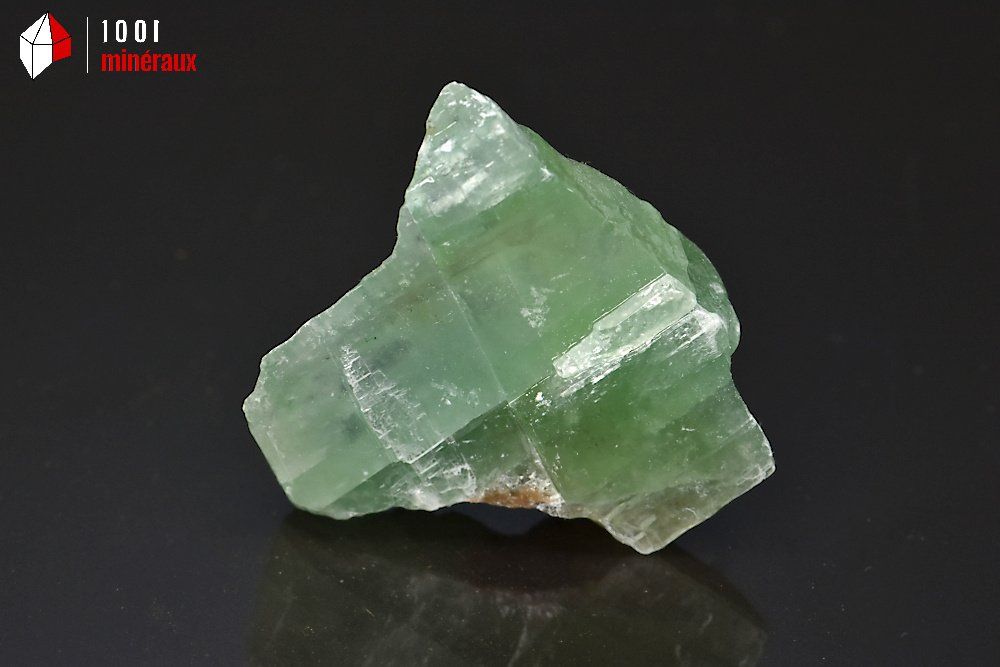 Spécimen d'une Calcite verte brute montrant de nombreuses lignes de fracture.