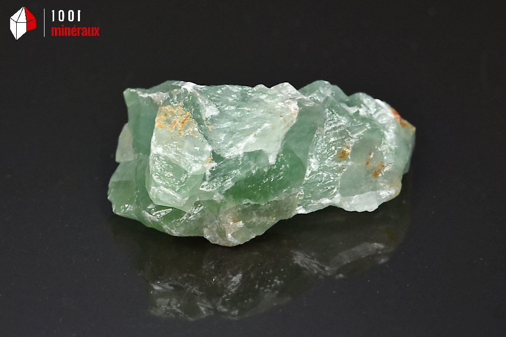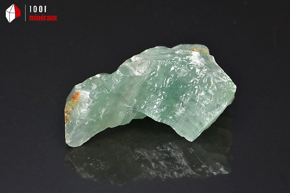 Spécimen d'une Calcite verte brute montrant de nombreuses lignes de fracture.
