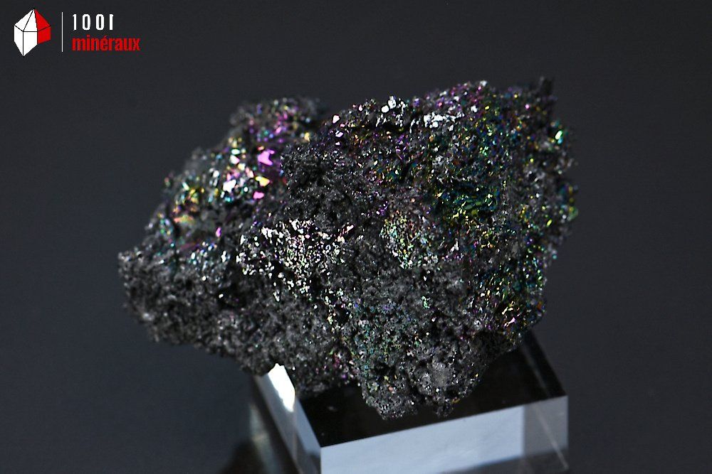 Spécimen de Carborandite présentée sur socle.