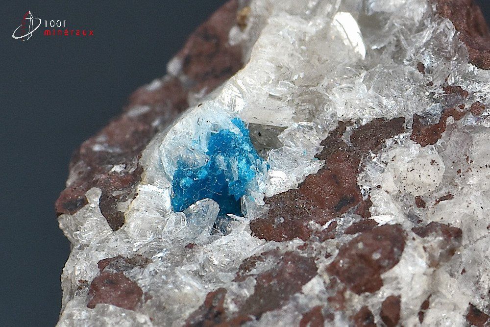 Cristal bleu de Cavansite (5 mm) sur Heulandite.