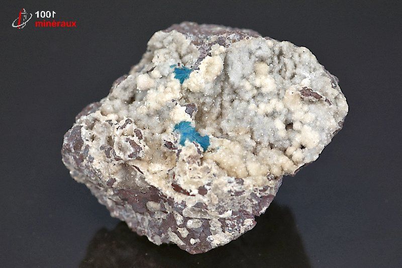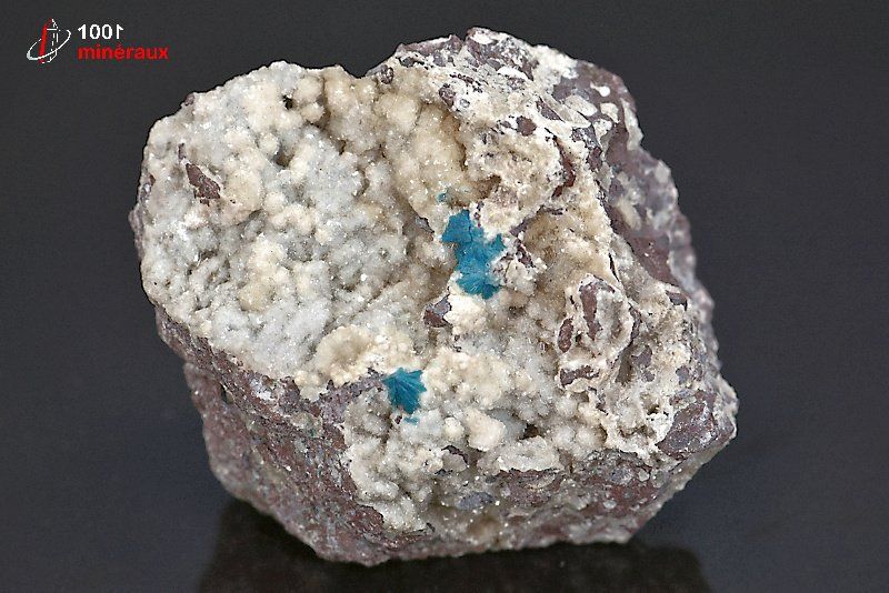 Spécimen de rosettes bleues de Cavansite sur Heulandite.