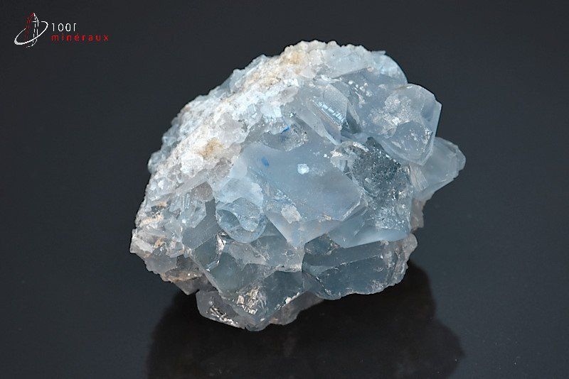 La CELESTINE ou CELESTITE appartient au groupe des sulfates. Elle contient du strontium et du soufre. Elle se présente sous une forme massive, en agrégat ou en cristaux bien développés. La Célestine est le plus souvent translucide ou transparente, de couleur bleu ciel, grise, incolore ou blanche.