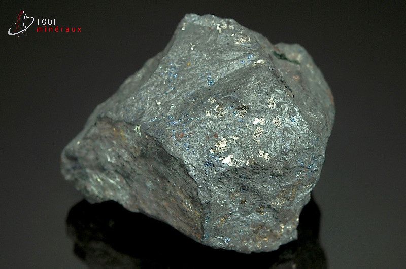 Elle se présente généralement sous une forme massive, donnant quelques éclats métalliques colorés. Sous sa forme cristallisée, on trouve des cristaux en prisme très courts.