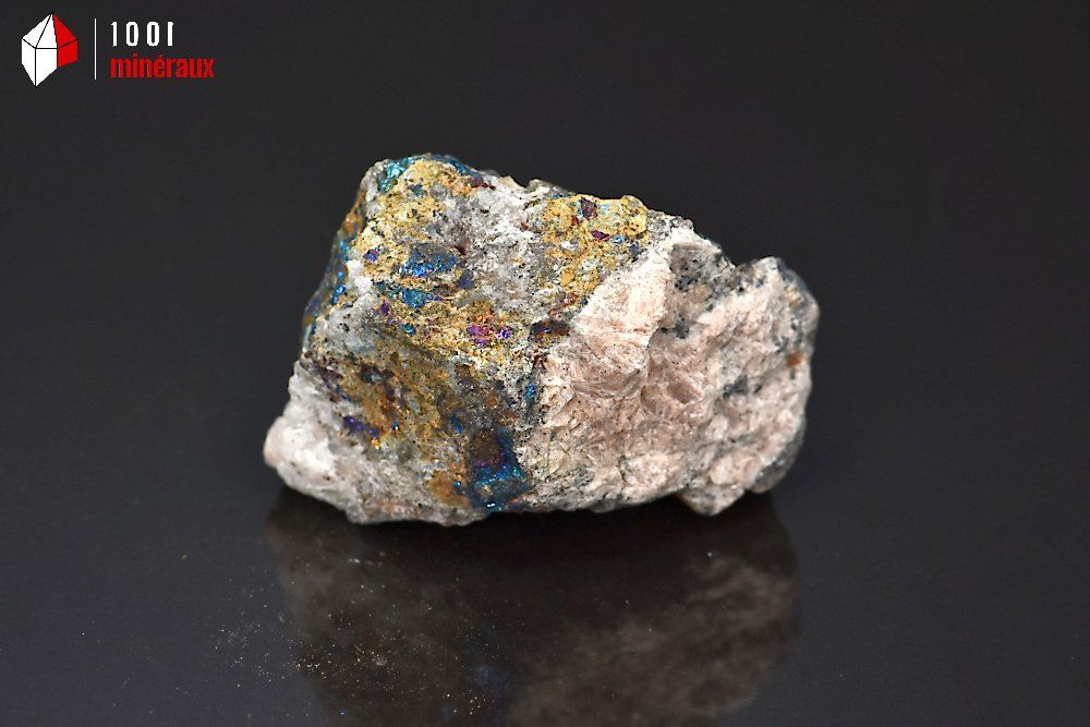 Elle se présente généralement sous forme massive. Les couleurs de la CHALCOPYRITE affichent du jaune, du rouge, du violet et du bleu.