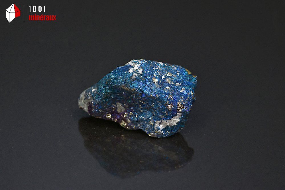 Spécimen de Chalcopyrite brute avec de beaux reflets métalliques bleus, mauves et dorés.