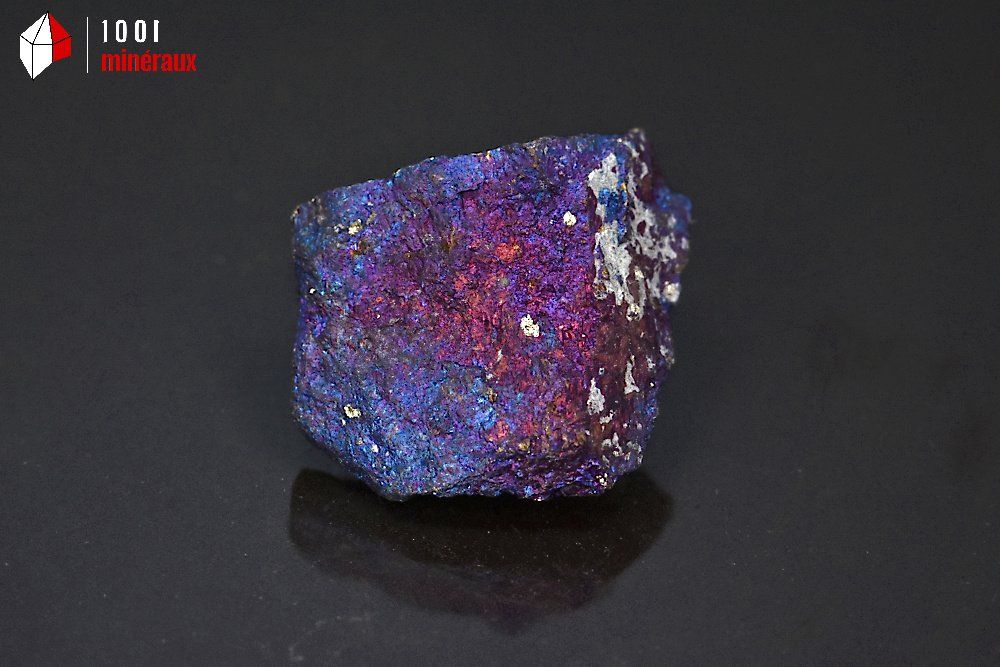 Spécimen de Chalcopyrite brute avec de beaux reflets métalliques bleus, mauves et dorés.