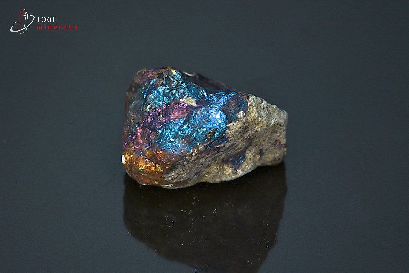 Spécimen de Chalcopyrite avec de beaux reflets métalliques cuivrés, bleus, mauves et dorés.