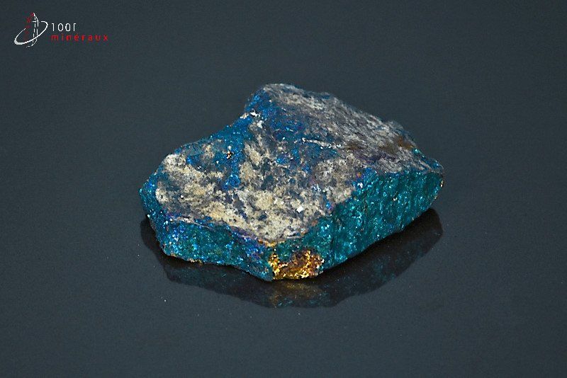 Spécimen de Chalcopyrite avec de beaux reflets métalliques cuivrés, bleus, mauves et dorés.