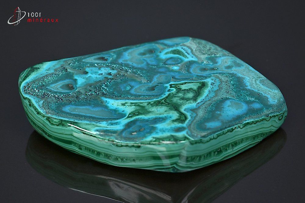 Chrysocolle sur Malachite forme libre polie - R.D. Congo - minéraux polis 6,9 cm / 179g / BH556