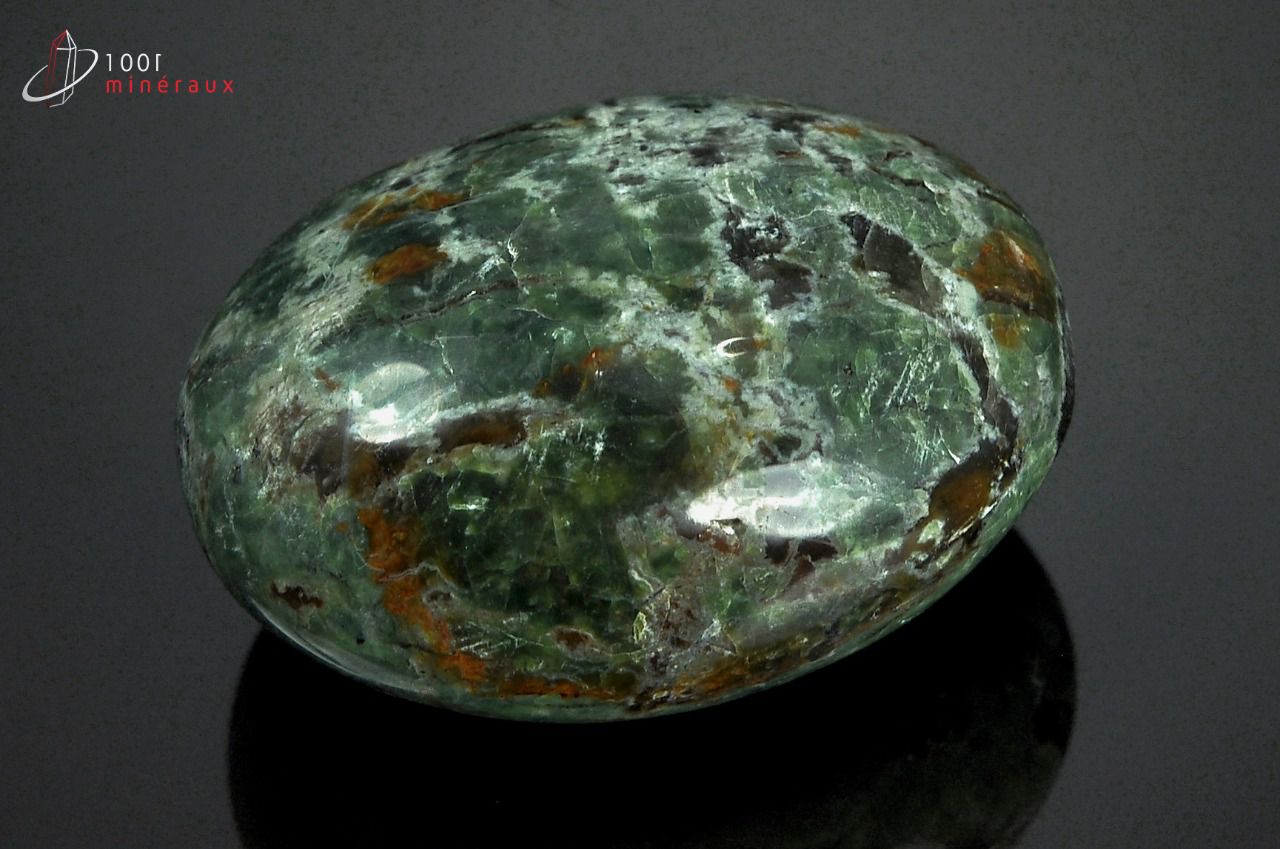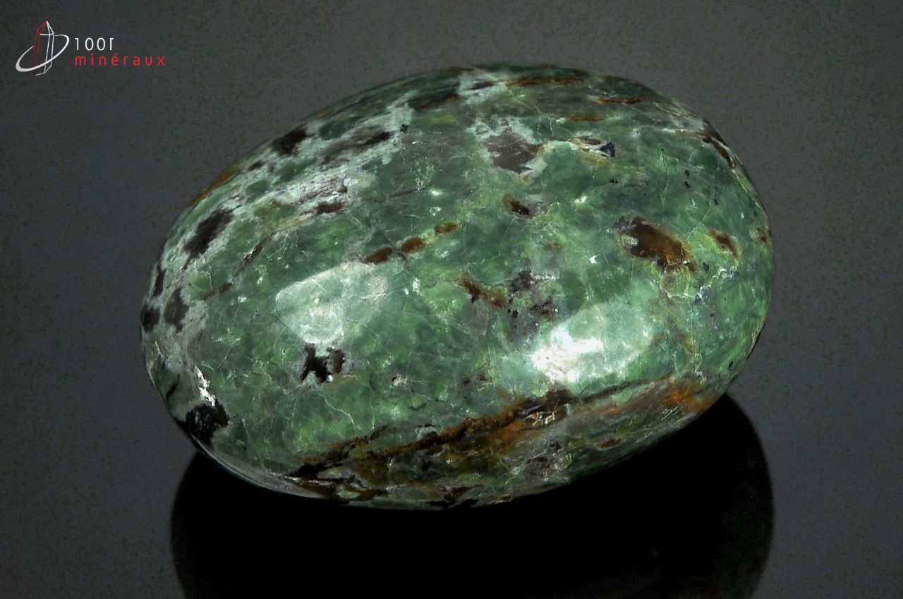 Spécimen d'un galet de Chrysoprase polie.